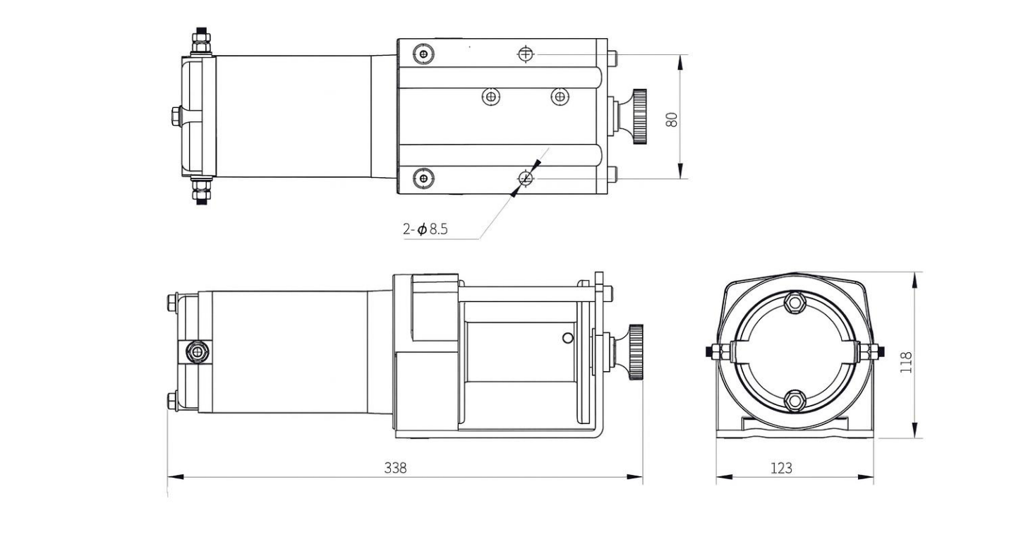 Лебедката работи на 12 V постоянно напрежение и постига номинална теглеща сила до 1130 кг (2500 lbs) на първия слой на стоманеното въже. С увеличаването на броя на слоевете въже на барабана, наличната теглеща сила постепенно намалява, което е характерно за всички лебедки с барабанен тип.