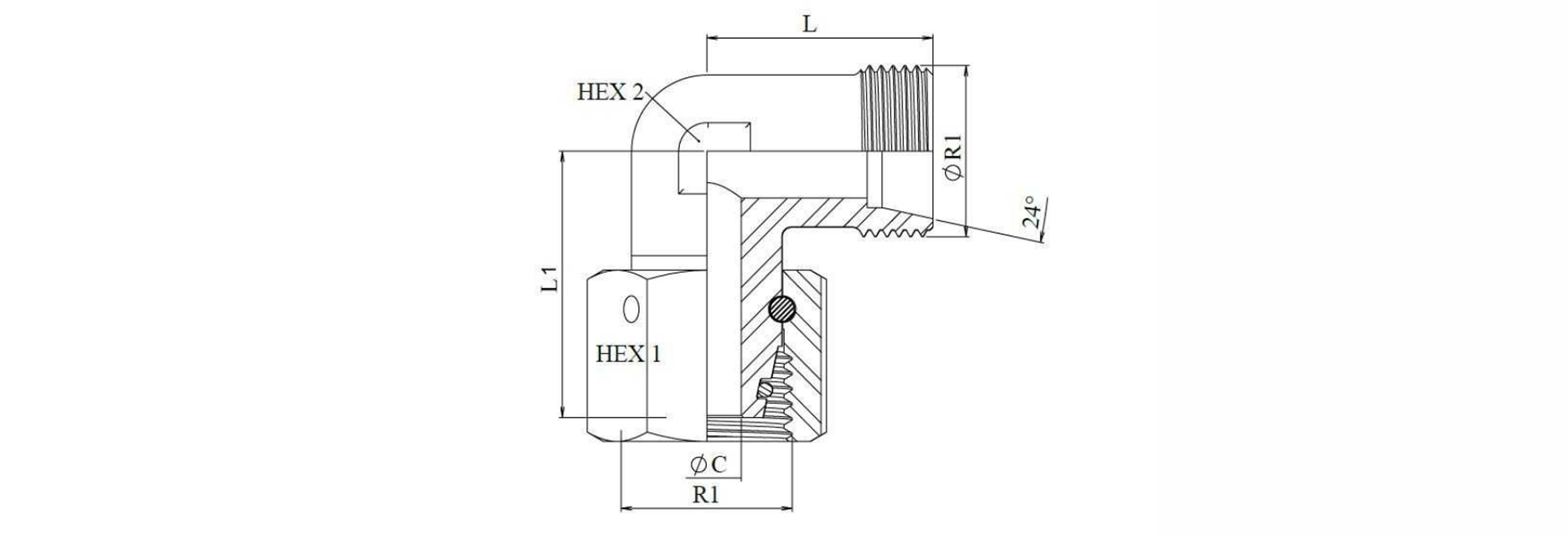 ХИДРАВЛИЧНО КОЛЯНО 90° S-8 С ВЪРТЯЩА ГАЙКА M16X1,5