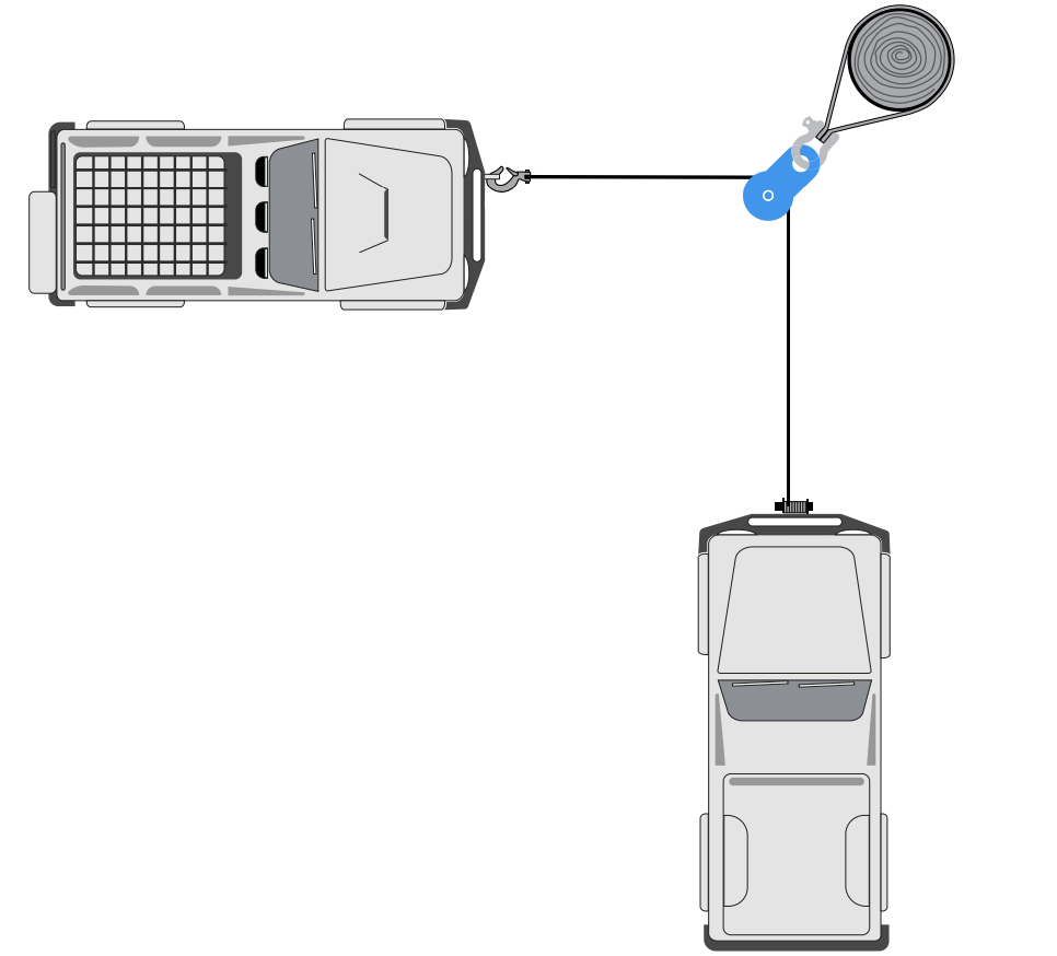 - Променя посоката на кабела на лебедката, когато точката на закрепване е изместена.