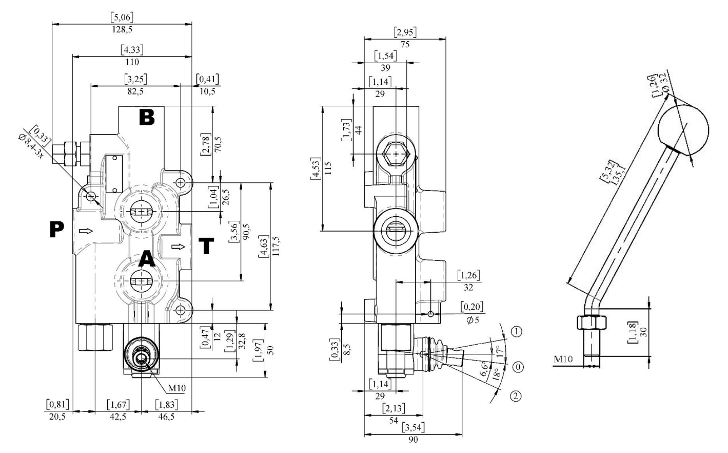 P priključek - 250 bar, T priključek - 50 bar, A in B priključek - 300 bar