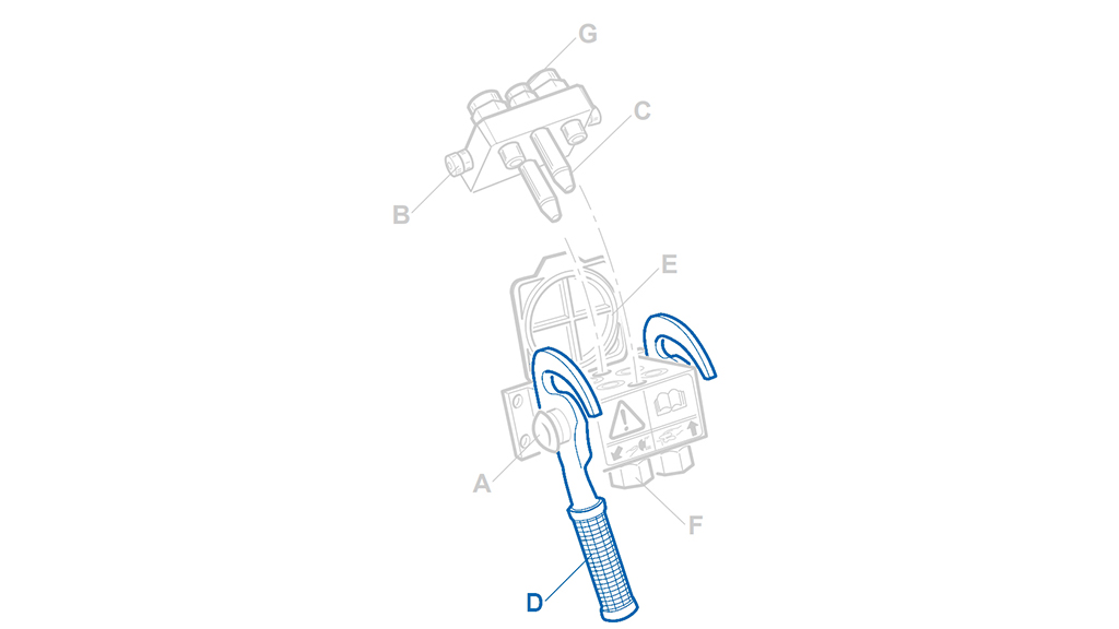 Original spak for Multi-Faster hurtigkobling, beregnet for den faste delen. Gir rask og jevn tilkobling/frakobling av hydraulikklinjer og sikrer pålitelig mekanisk låsing i arbeidsposisjon. Den ergonomiske formen og det robuste designet garanterer lang levetid og trygg bruk under krevende forhold.