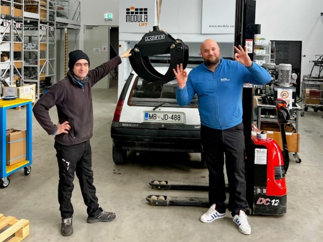 Este un lucru bun că clientul nostru are o mașină atât de practică – a venit să-și ridice grapelurile de pădure direct în depozitul nostru.