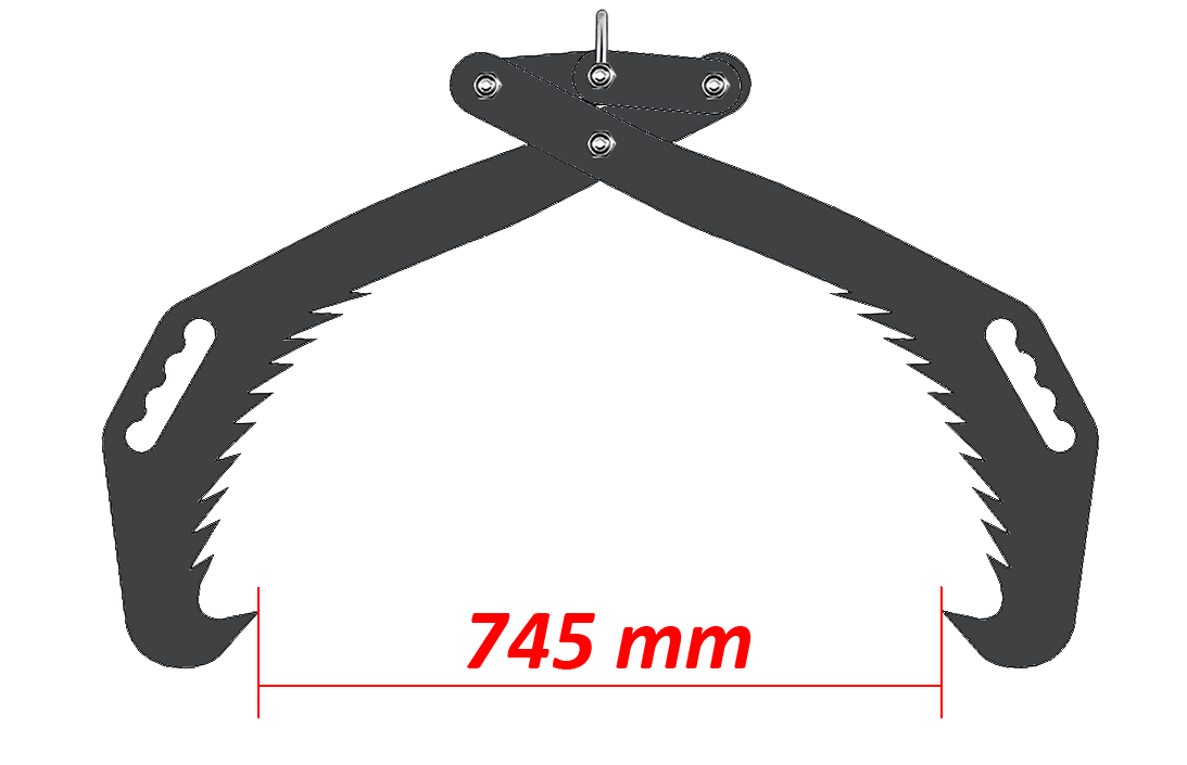 Prenosne ročne gozdarske klešče so opremljene s kavljem za hitro in enostavno montažo ter demontažo. Efektivna (delovna) širina klešč je od 100 do 700 mm, maksimalno odpiranje pa je 745 mm. Klešče so iz robustnega materiala S355 (jeklo) debeline 12 mm. V kompletu so klešče, kavelj za pritrditev in ojačani vijaki M20. Klešče so pobarvane in tako dodatno zaščitene.
