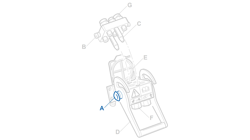Originálne bezpečnostné tlačidlo pre rýchlospojky Multi-Faster. Tlačidlo mechanicky blokuje páku na pevnej časti dosky, čím zabraňuje náhodnému odpojeniu hydraulických vedení počas prevádzky alebo prepravy. Na odpojenie je potrebné tlačidlo stlačiť. Páku nikdy nesilite bez predchádzajúceho stlačenia.